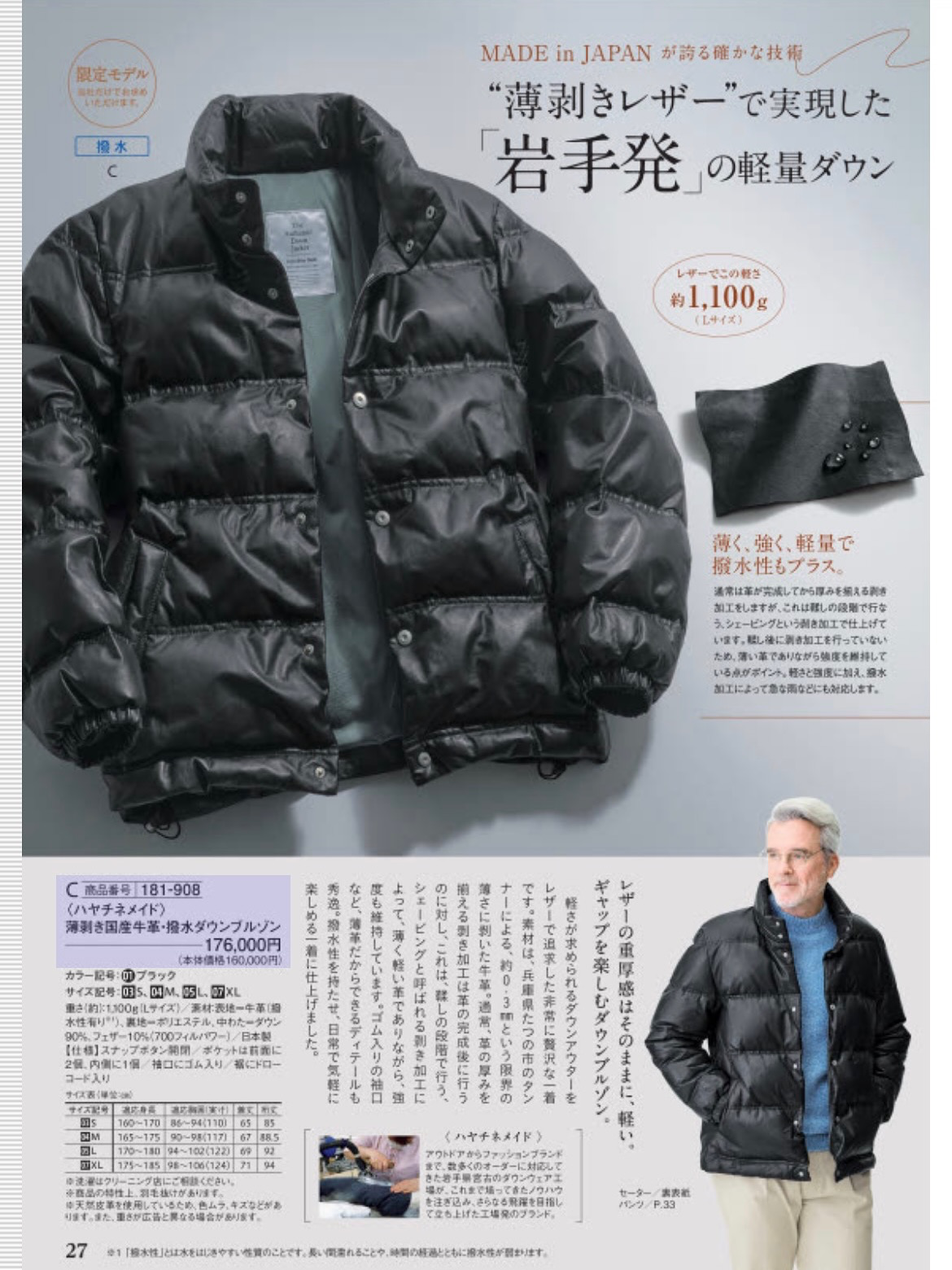 上質な大人のためのカタログ通販サイト「ライトアップショッピングクラブ」との共同企画で制作した撥水レザーダウンブルゾン。