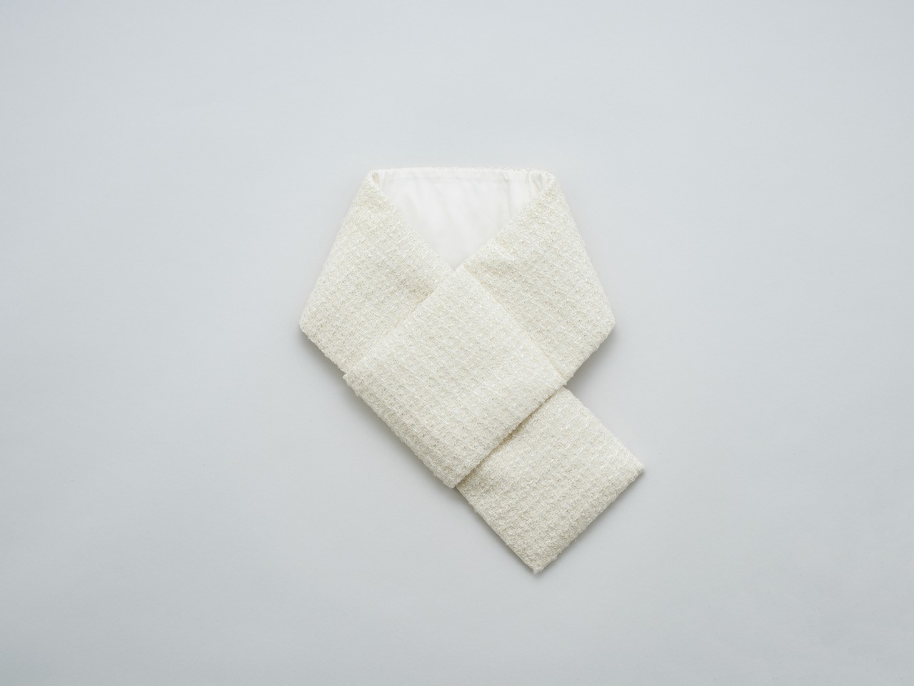 少し光沢感のある素材を織り込んだツイードで上品さと暖かさを兼ね備えたマフラーです。